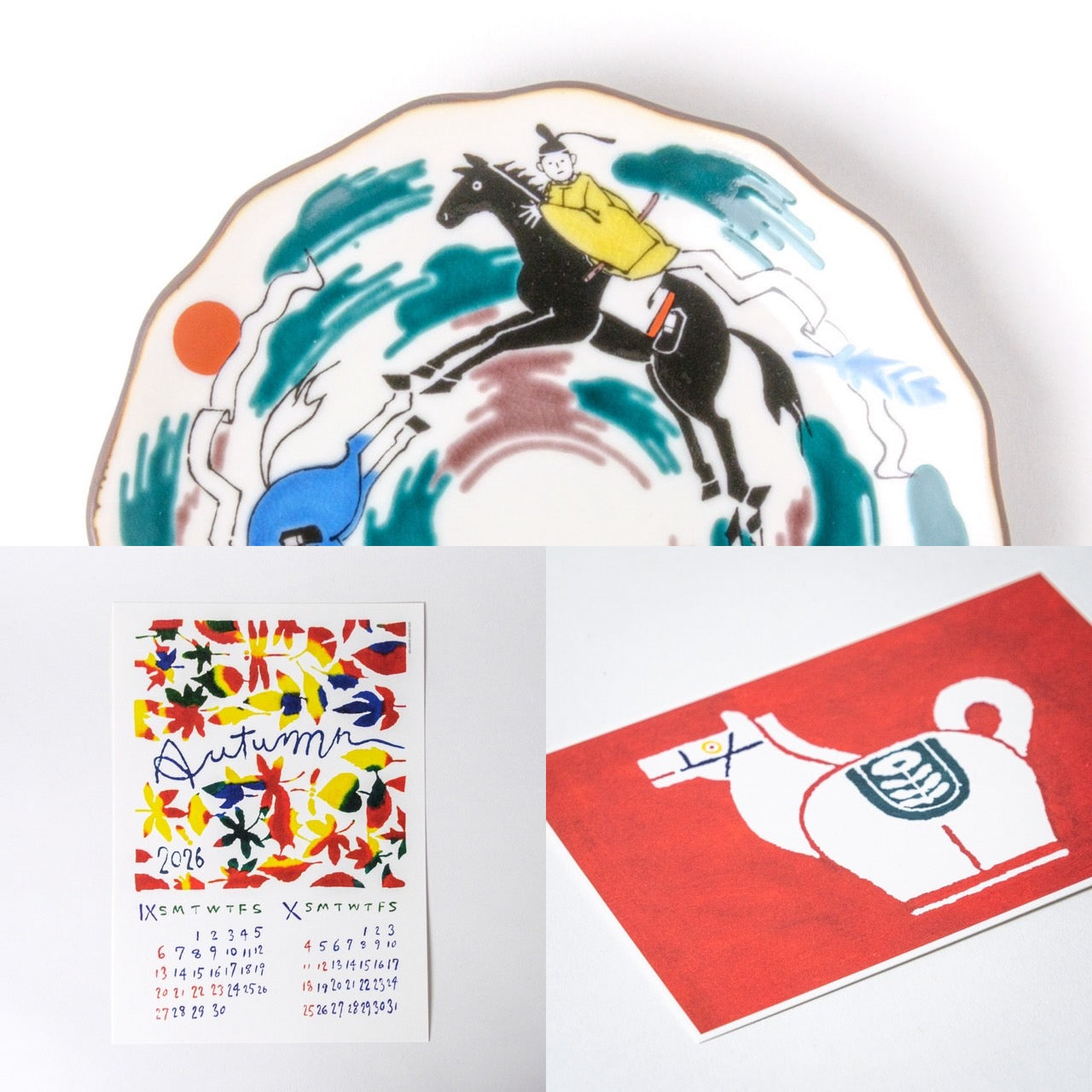 今年も新しい年に向けた筒描カレンダーやポストカード、九谷焼花型皿をご用意しております。ぜひご覧ください。