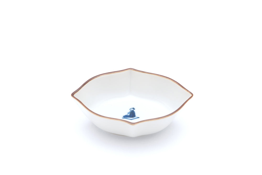 上出長右衛門窯の代表的なデザインのひとつ、「笛吹」を指先サイズの小ささで描きました。小付は通常の小鉢より一回り小さい器のこと。醤油や手塩、薬味入れなどにちょうどいいサイズです。小さな干菓子や、アクセサリートレイとしてもお使い頂けます。