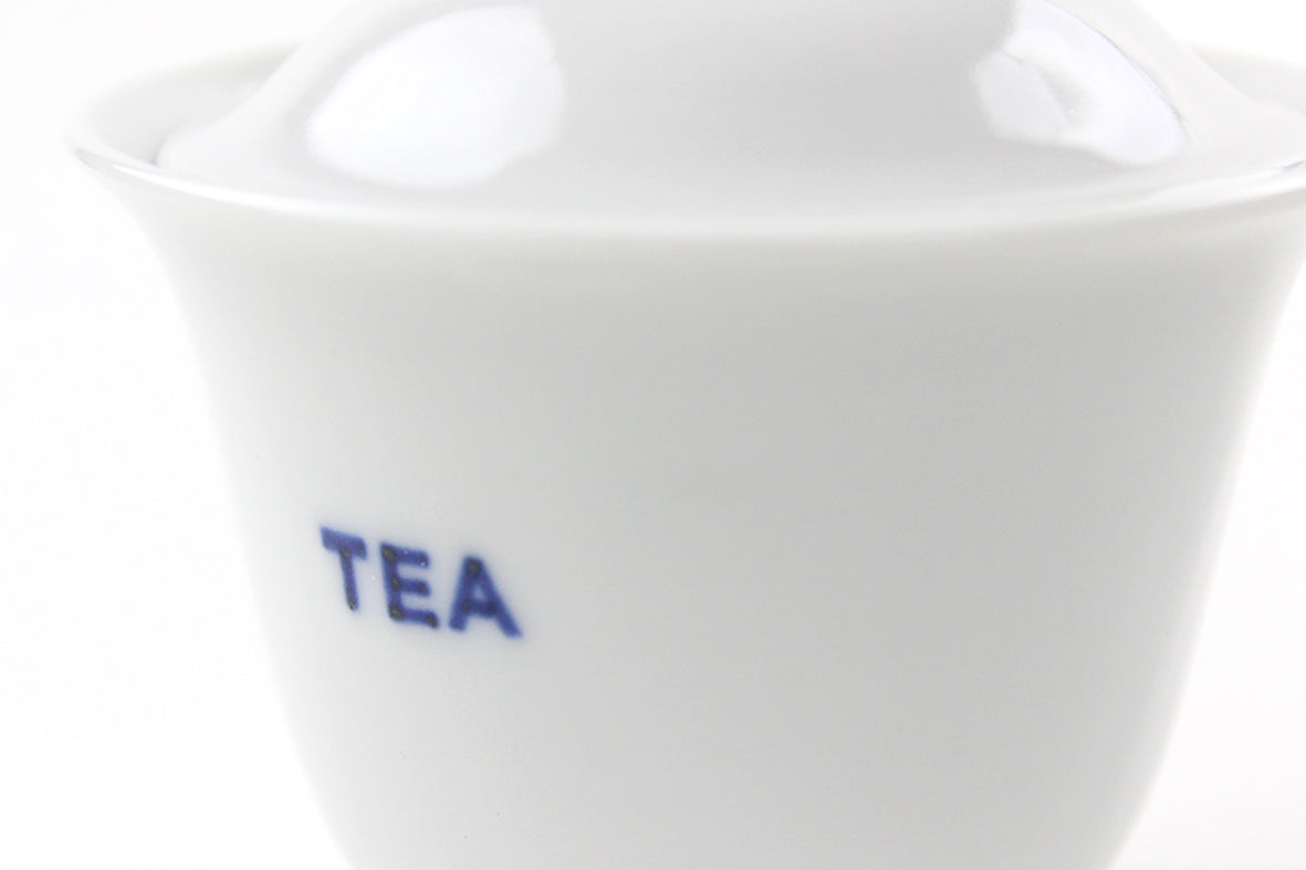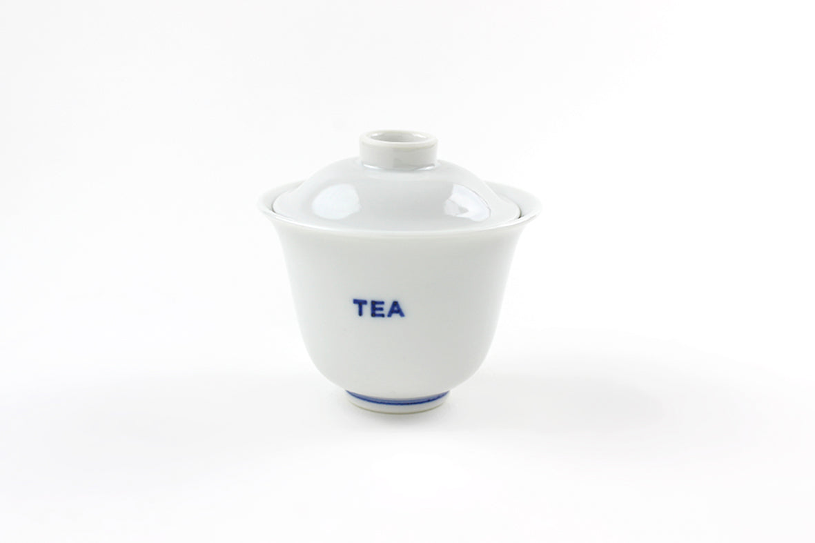 黒釉黄彩龍文の色絵を削ぎ落とし、TEA字のみを残したシンプルなデザインです。φ81×H81mm/90cc/化粧箱入