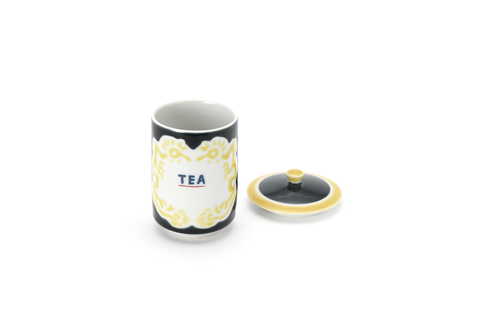 和・漢・洋をテーマにし、「TEA」の文字と向き合う龍(雨龍)、そして黄色と黒のコントラストが大胆なデザインです。九谷焼ならではの厚みのある盛絵の具を使用しているので、色に深みがあるのも特徴のひとつです。